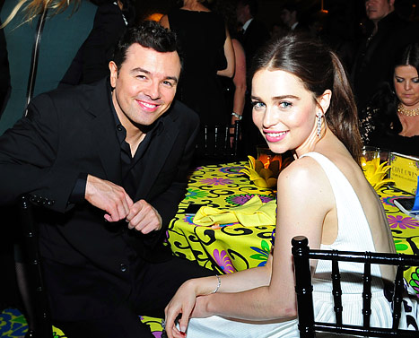 Seth MacFarlane dated "Game of Thrones" actress Emilia Clarke. According to Gossip Cop, they were casually dating but it's not an exclusive relationship. The affair was neither confirmed nor denied by either of the couple, and in November 2012, MacFarlane mentioned on Twitter that he is a "single guy". The two were spotted spending time together during Emmys Weekend, including a cozy conversation and at the after-party thrown by HBO following the 70th Golden Globe Awards on January 13, 2013. Deadline.com referred to Clarke as Seth's girlfriend.