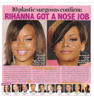 The question is: "What plastic surgeon experts believe about Rihanna's nose job?"